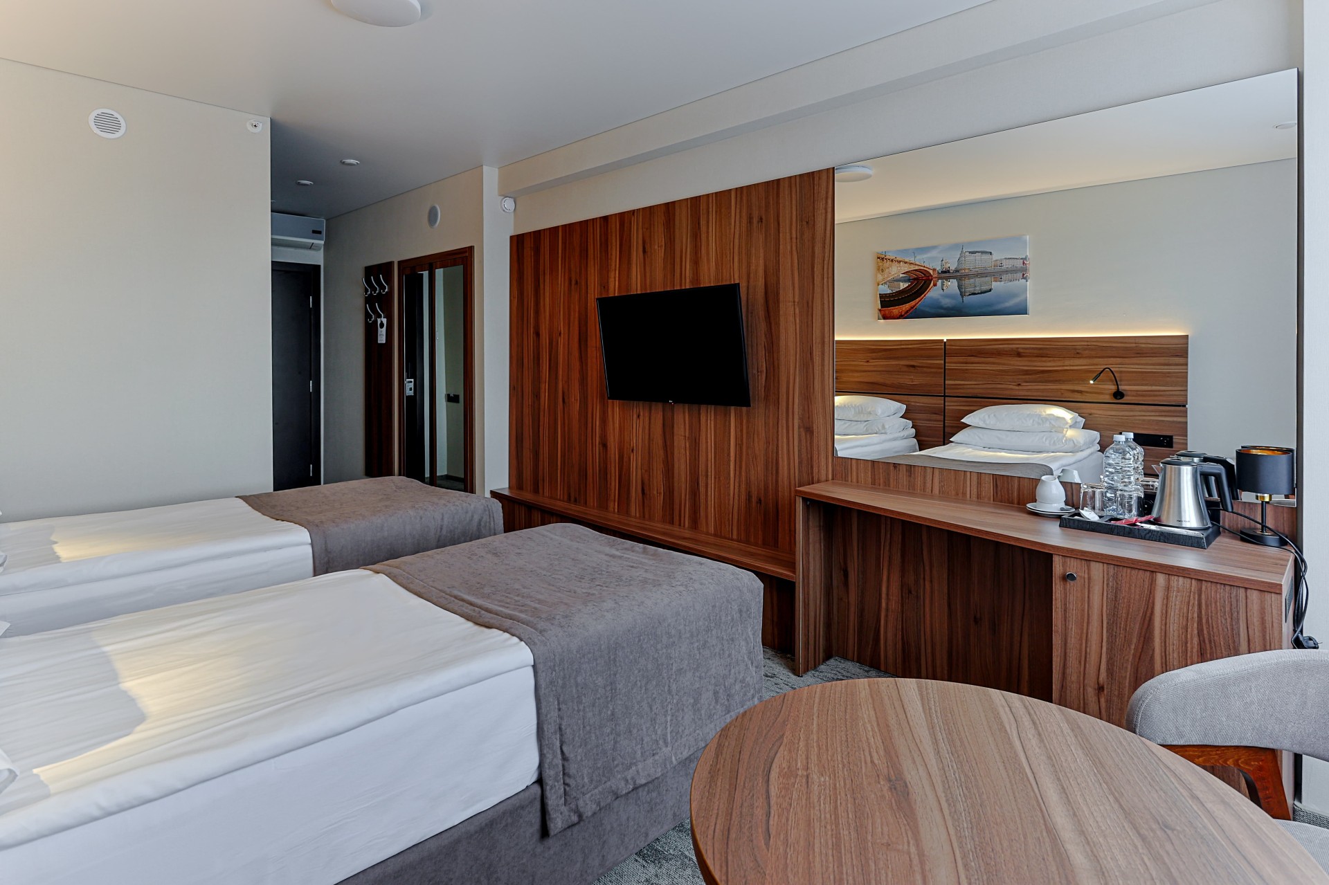 Хороший чистый номер. Все необходимое для комфортного проживания в нем есть: белоснежное постельное белье, халаты, тапочки, телевизор, стол…
