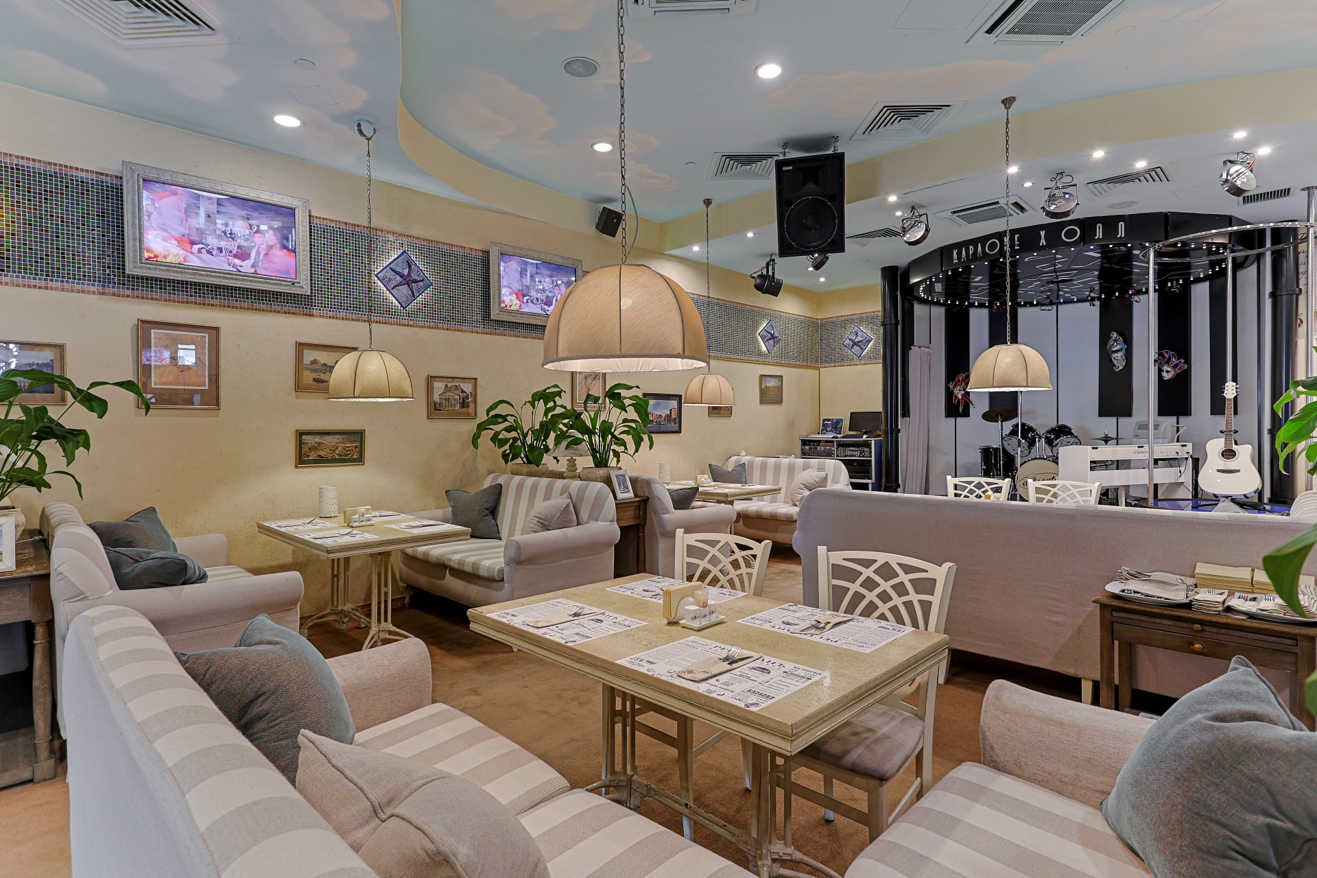 По вечерам, с 19.00 до 23.00, в ресторане играет живая музыка, а с 23.00 до 5 утра работает караоке-холл. Профессиональное оборудование и присутствие грамотного звукорежиссера позволяют получить удовольствие от исполнения любимых хитов. Каждую пятницу и субботу проходят тематические караоке - вечеринки.