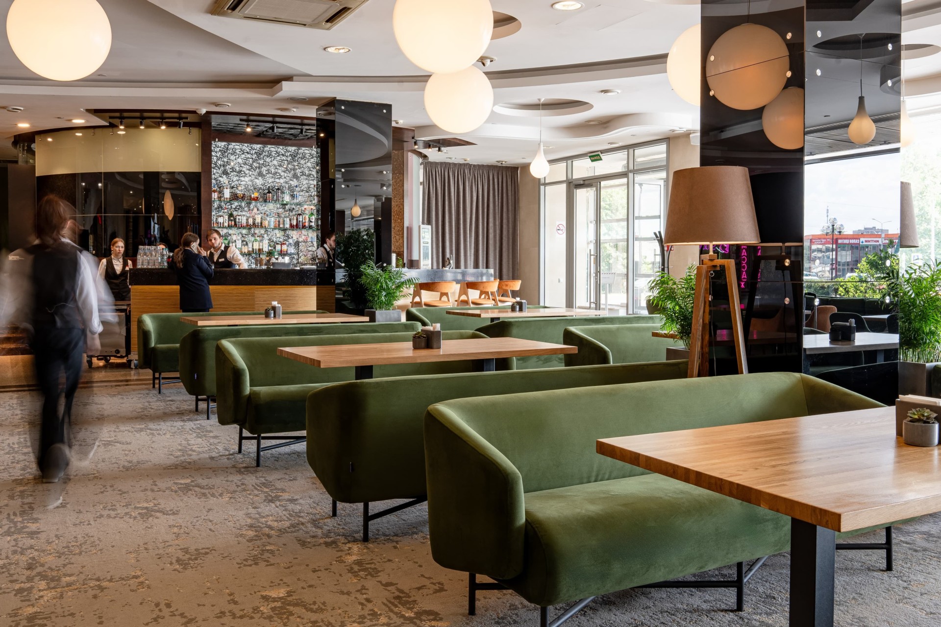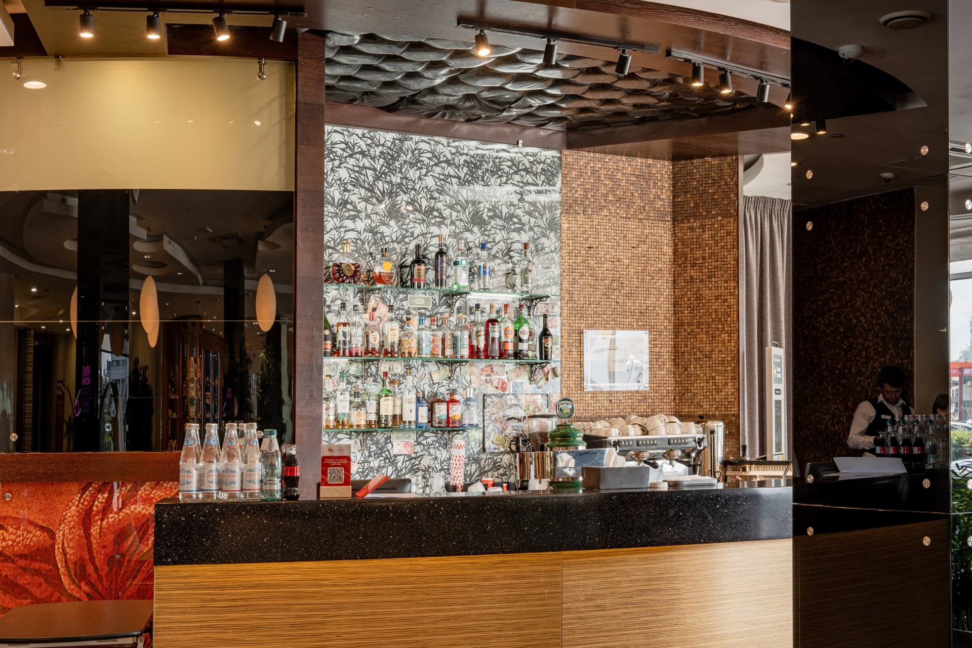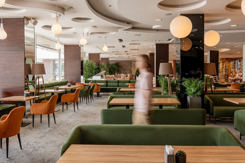 Наш лобби-бар — место, где можно отдохнуть за бокалом вина после трудового дня или насладиться чашкой ароматного чая. Так же мы рады Вам предложить классические и авторские коктейли, кофе, десерты, кондитерские изделия и многое другое. Прохладительные напитки представлены безалкогольной, слабоалкогольной и крепкой линейкой продукции. Лобби-бар организован рядом с центральным входом в отель, что избавляет его посетителей от лишних поисков.